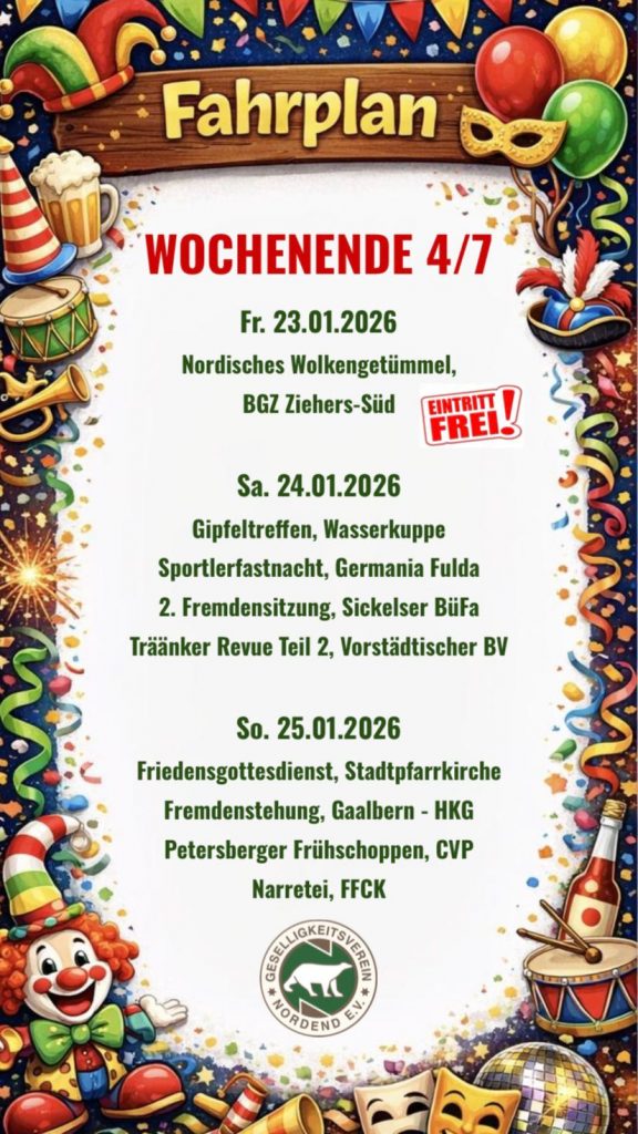 Beitrag veröffentlicht:23. Januar 2026 Weitere Artikel ansehen Vorheriger BeitragWolkengetümmel 2026 Das könnte dir auch gefallen 1. Fremdensitzung 16. Januar 2024 Die Fürstenmannschaft wünscht allen ein frohes neues Jahr 1. Januar 2024 Inthronisierung Sa. 16.11.2024 27. Oktober 2024
